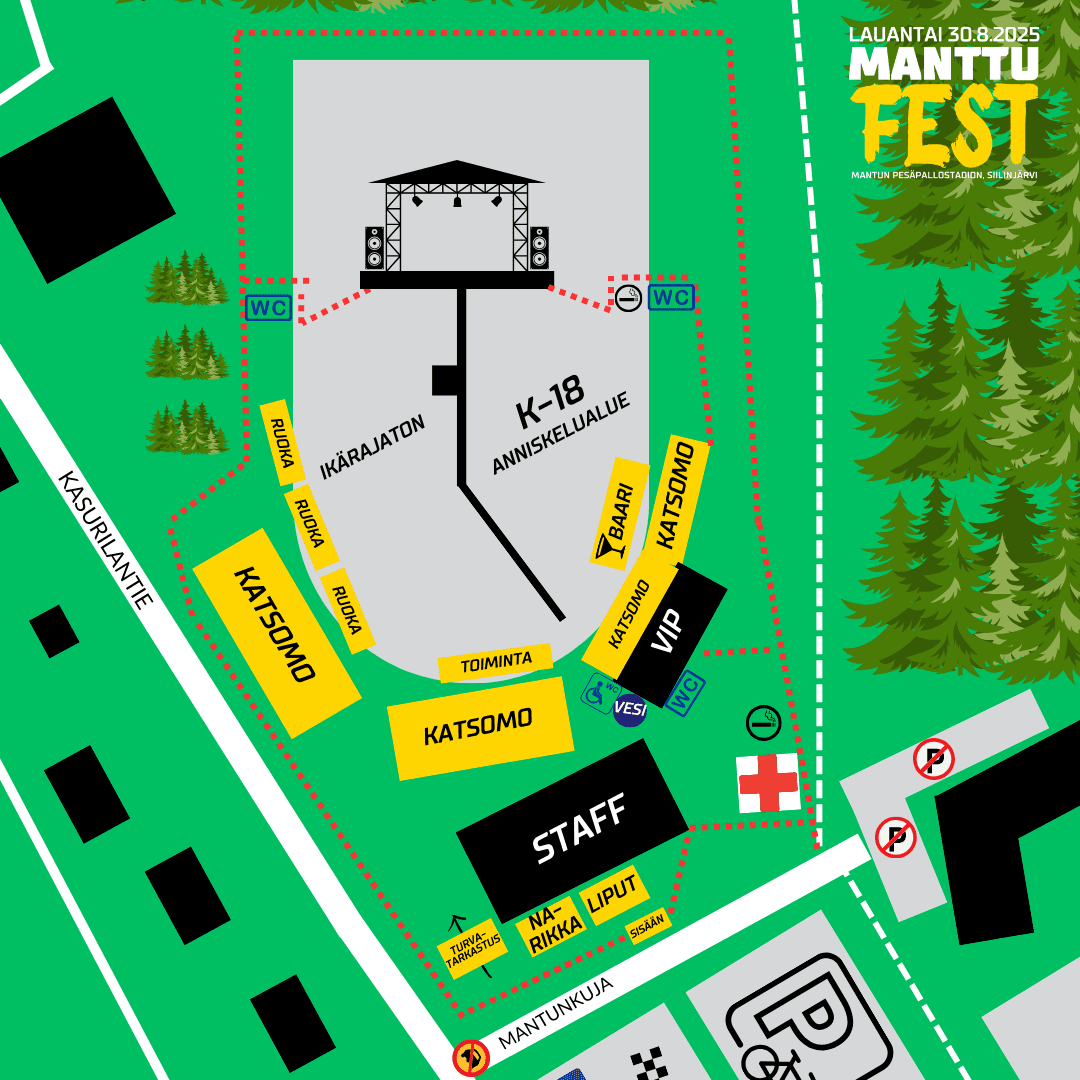 ManttuFest on yhteinen juhla, jossa jokaisen kuuluu tuntea olonsa turvalliseksi ja arvostetuksi. Emme hyväksy minkäänlaista syrjintää tai häirintää, ja pidämme huolta siitä, että festivaaliympäristö on kunnioittava ja avoin kaikille. Kehotamme ilmoittamaan häiritsevästä tai epäasiallisesta käytöksestä matalalla kynnyksellä – reagoimme jokaiseen ilmoitukseen nopeasti ja asianmukaisesti.